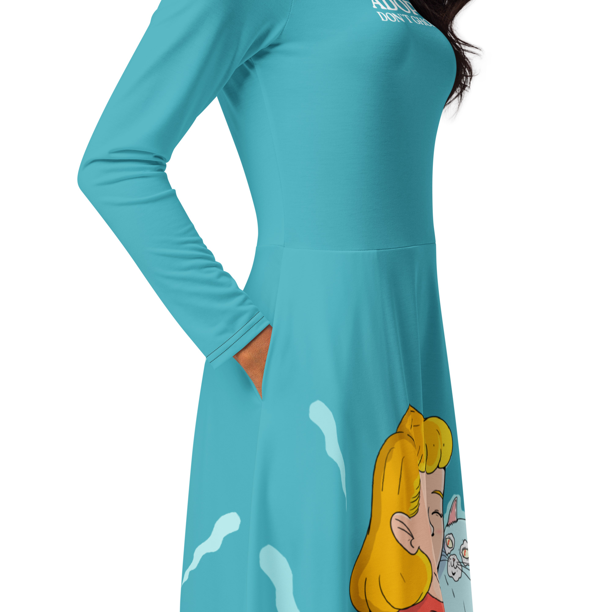 Adopt, Don’t Ghost All-Over Print Long Sleeve Midi Dress | GiluCats