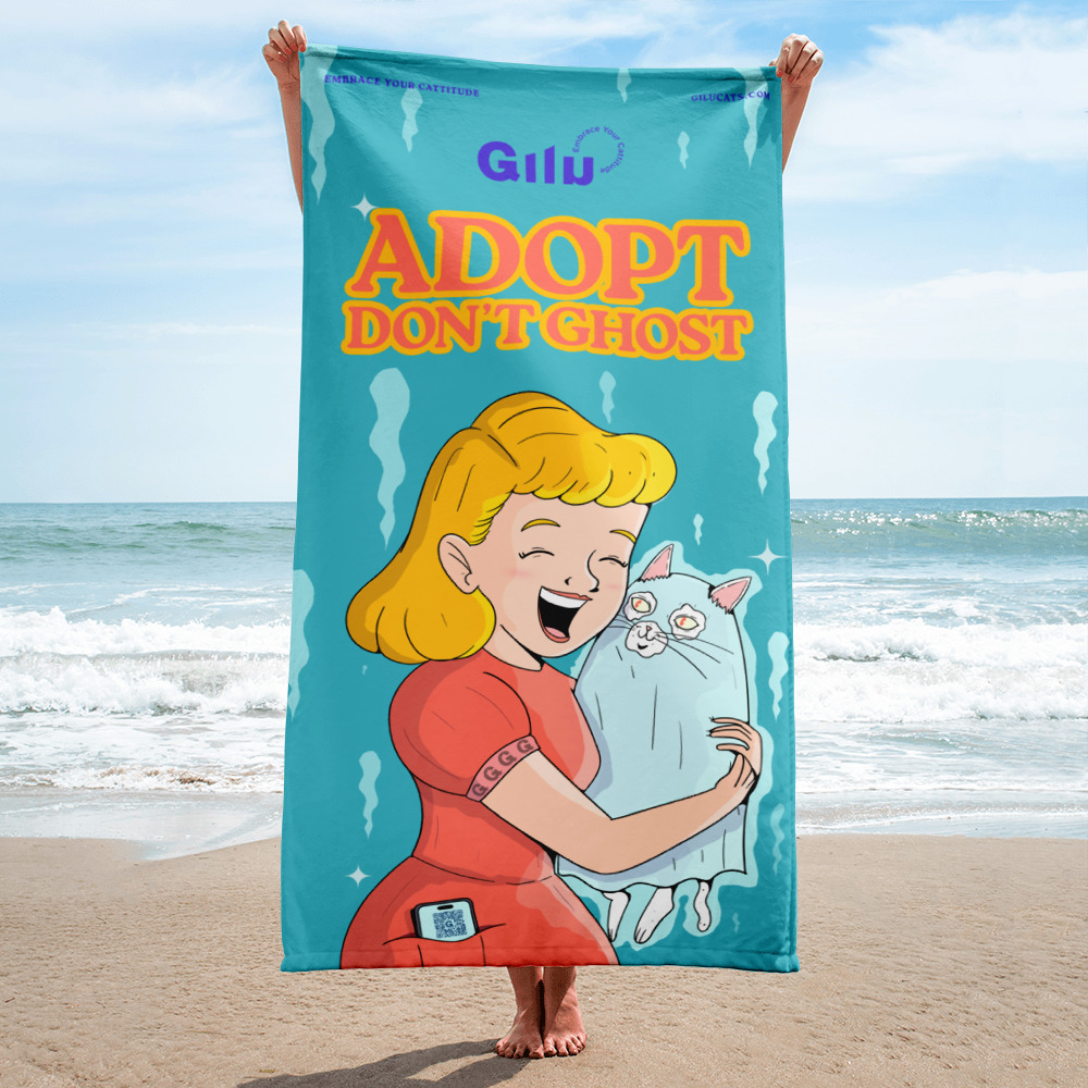 Adopt, Don’t Ghost Beach Towel | GiluCats
