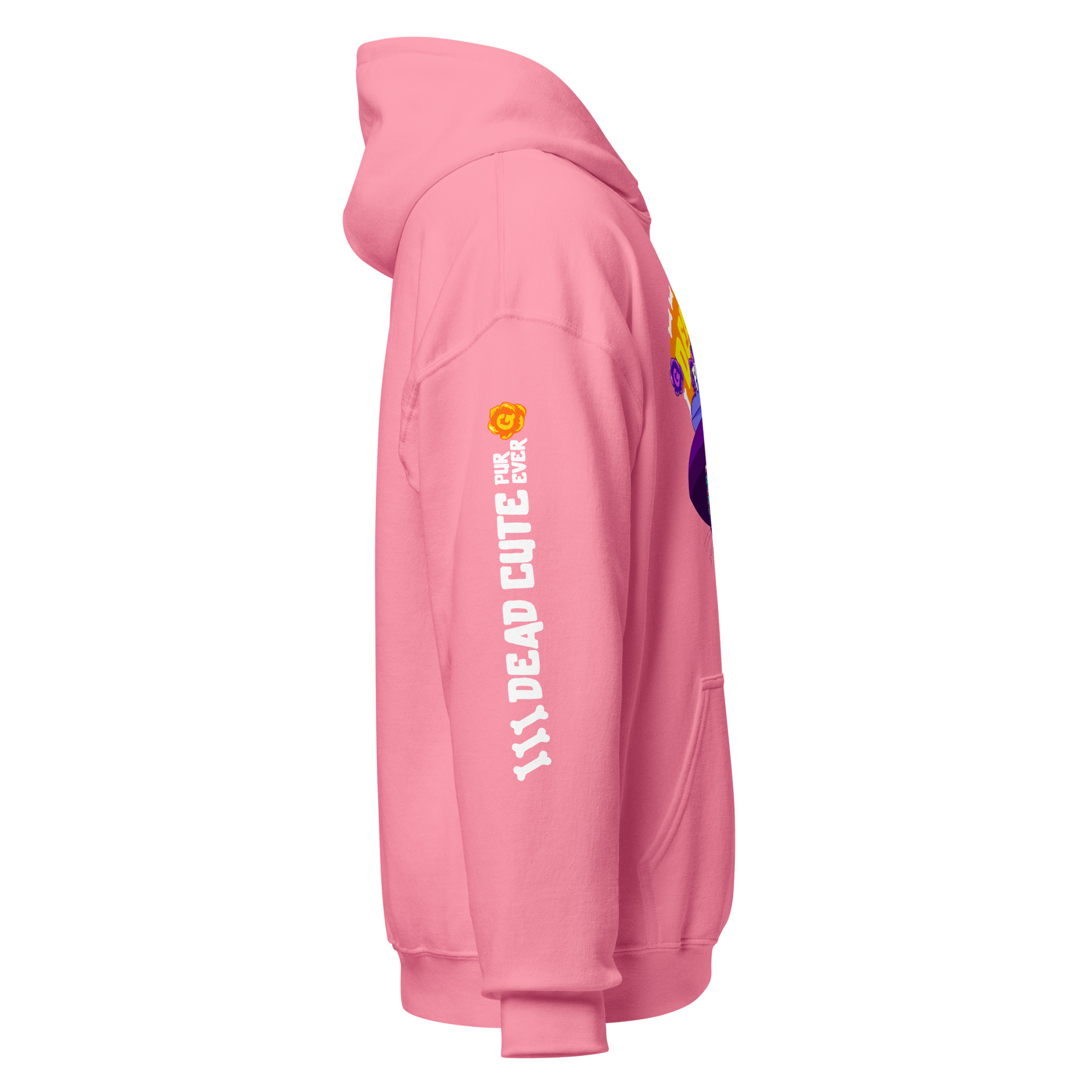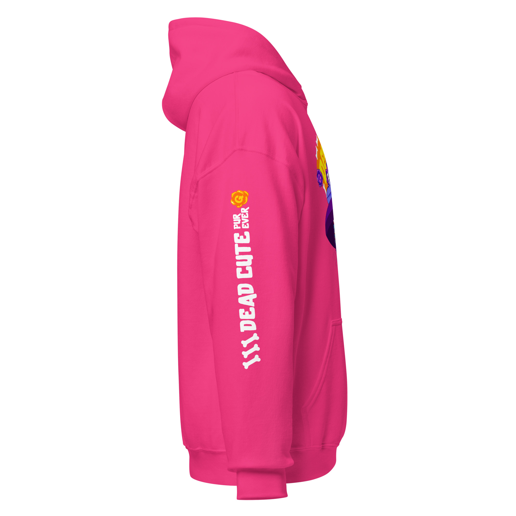 Stay warm in this soft fleece hoodie with bold Dead Cute cat art. Classic fit, cozy feel. 15% of every sale funds cat rescue.