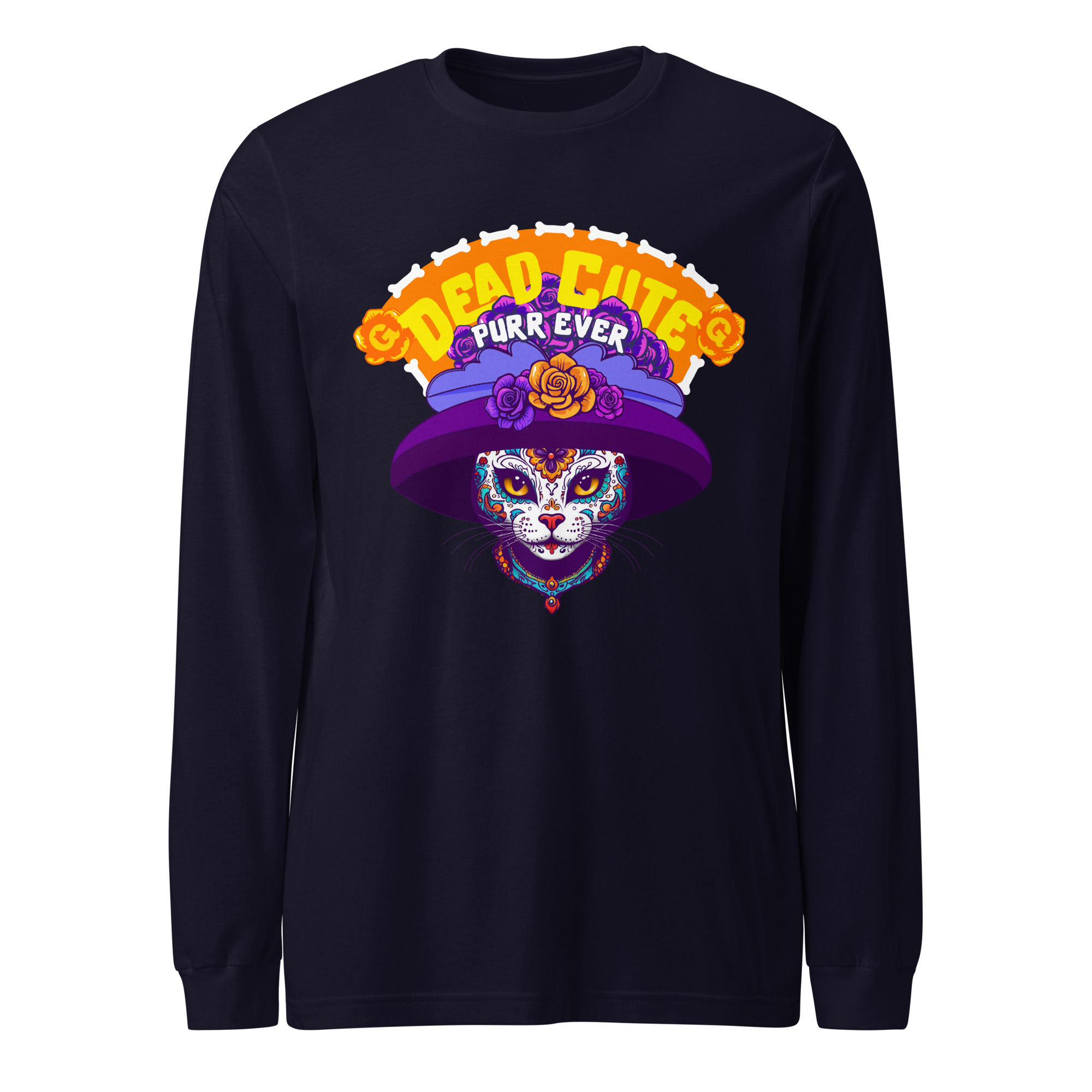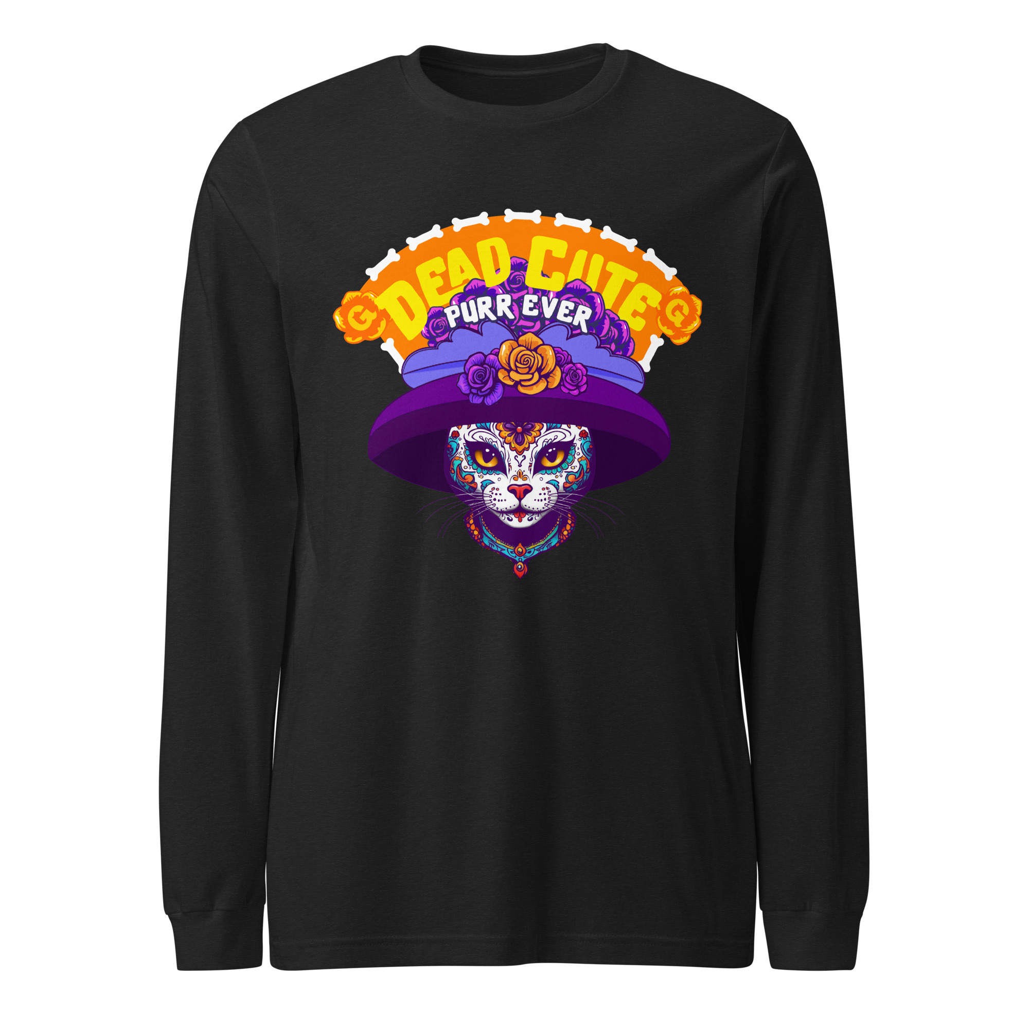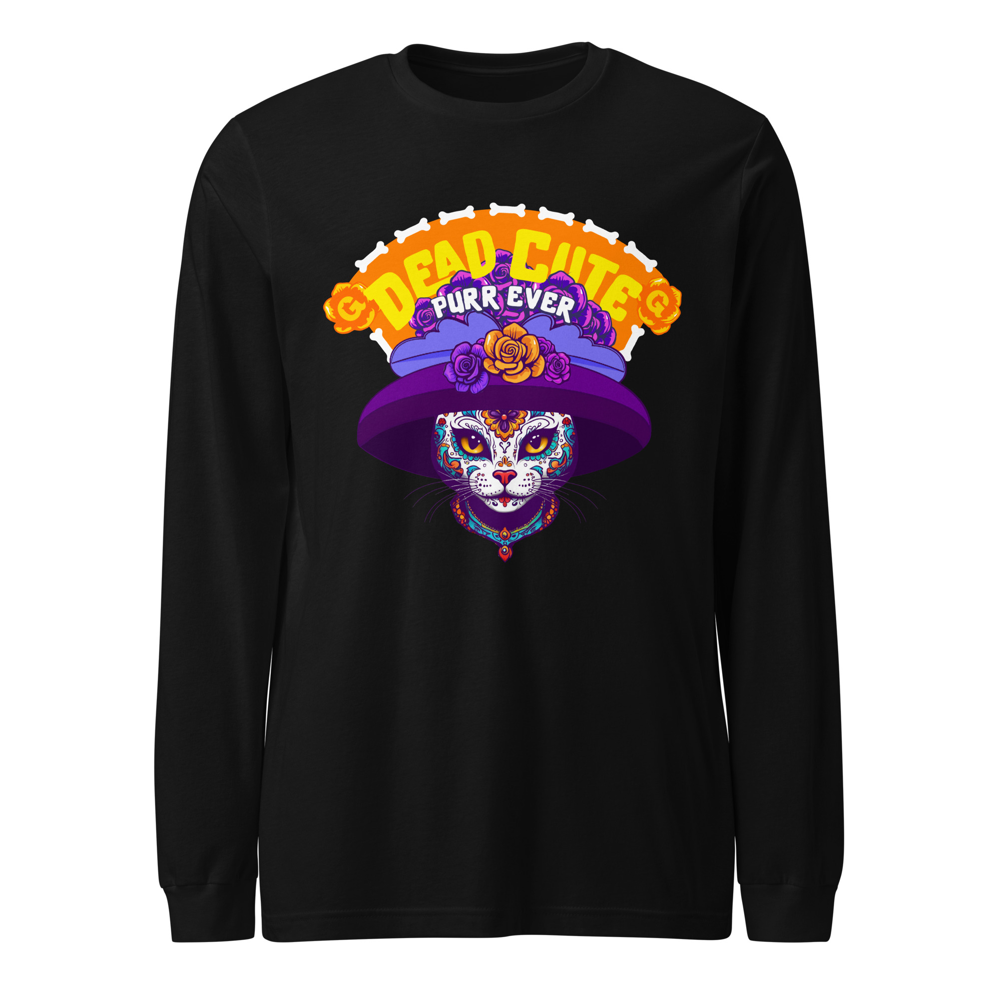 Dead Cute Cat Long Sleeve Tee – Purr-Ever Día de los Muertos