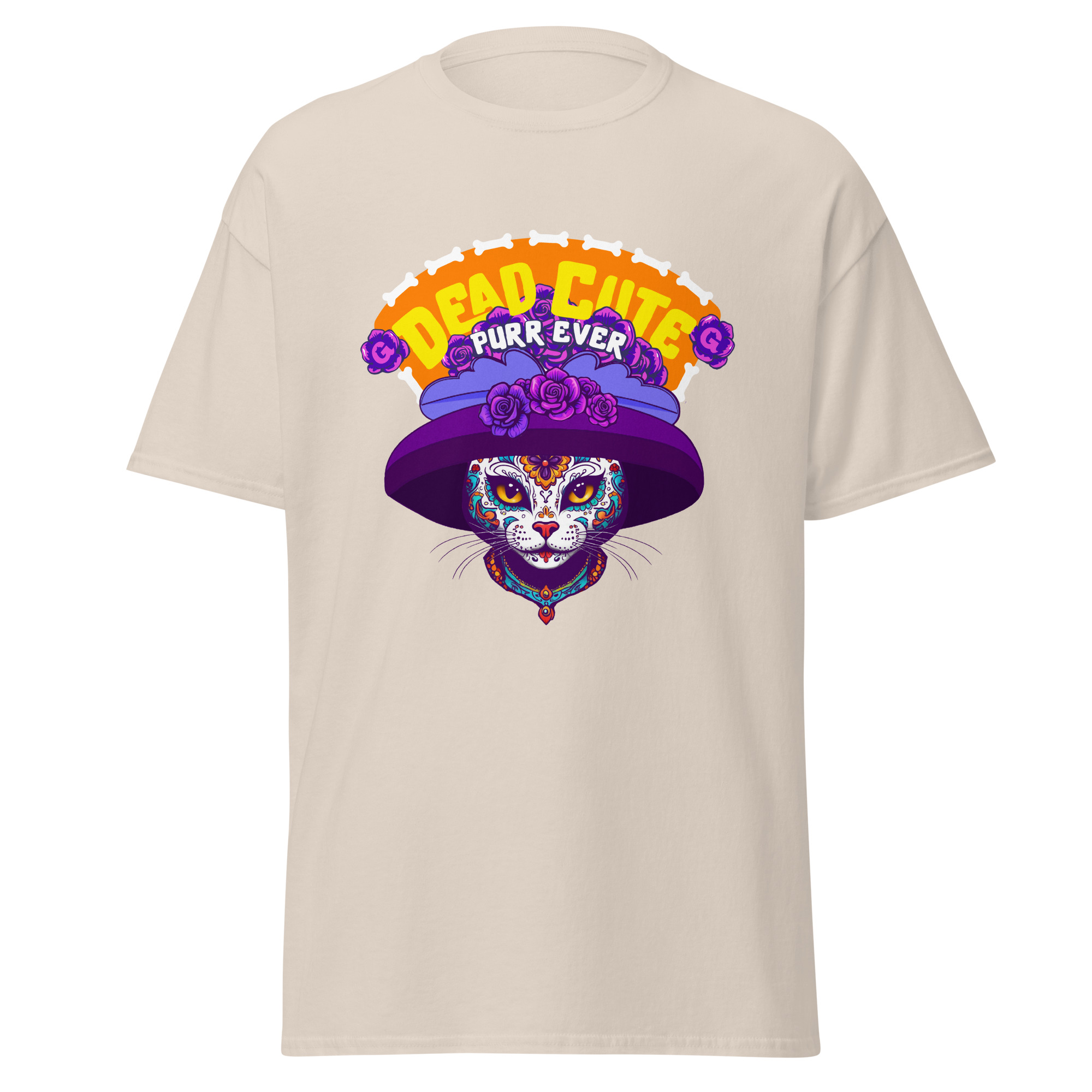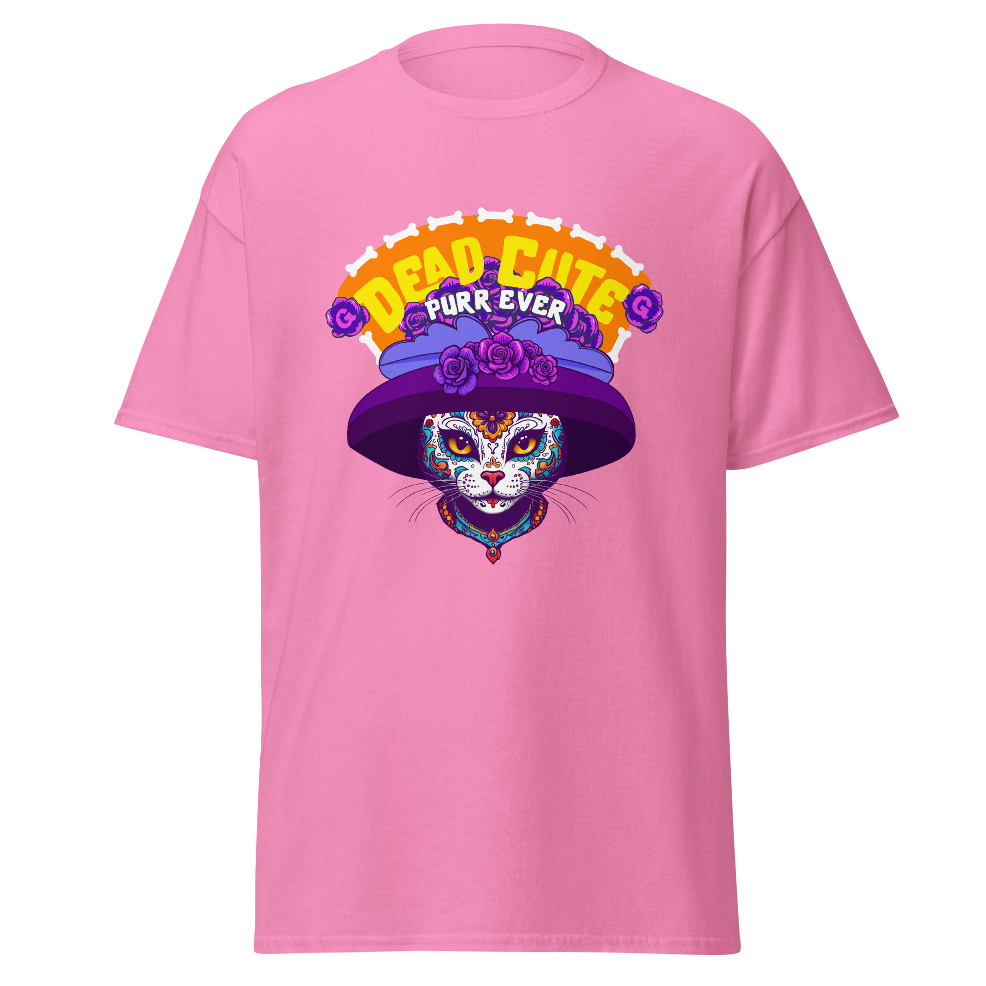Cute, creepy, and totally cattastic—the Dead Cute Cat T-Shirt is proof that nine lives come with nine looks. This Día de los Muertos–inspired design features a sugar-skull kitty rocking a dramatic purple hat and roses, reminding the world that cat style is eternal.
