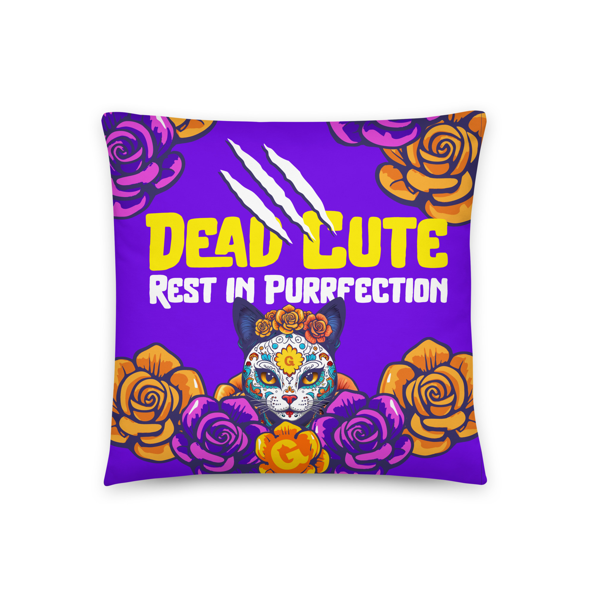 Add a playful touch to your home with the Dead Cute Cat Throw Pillow!