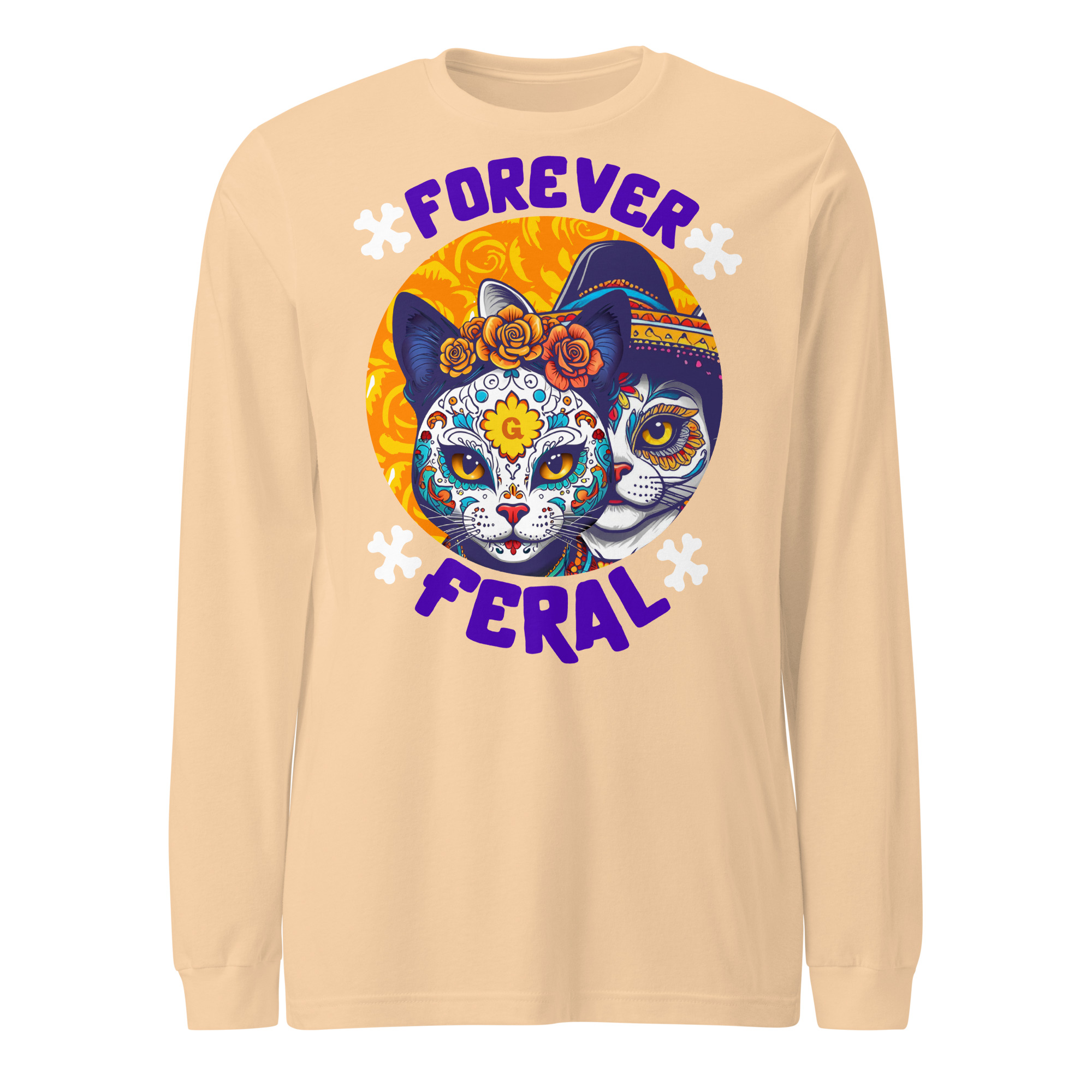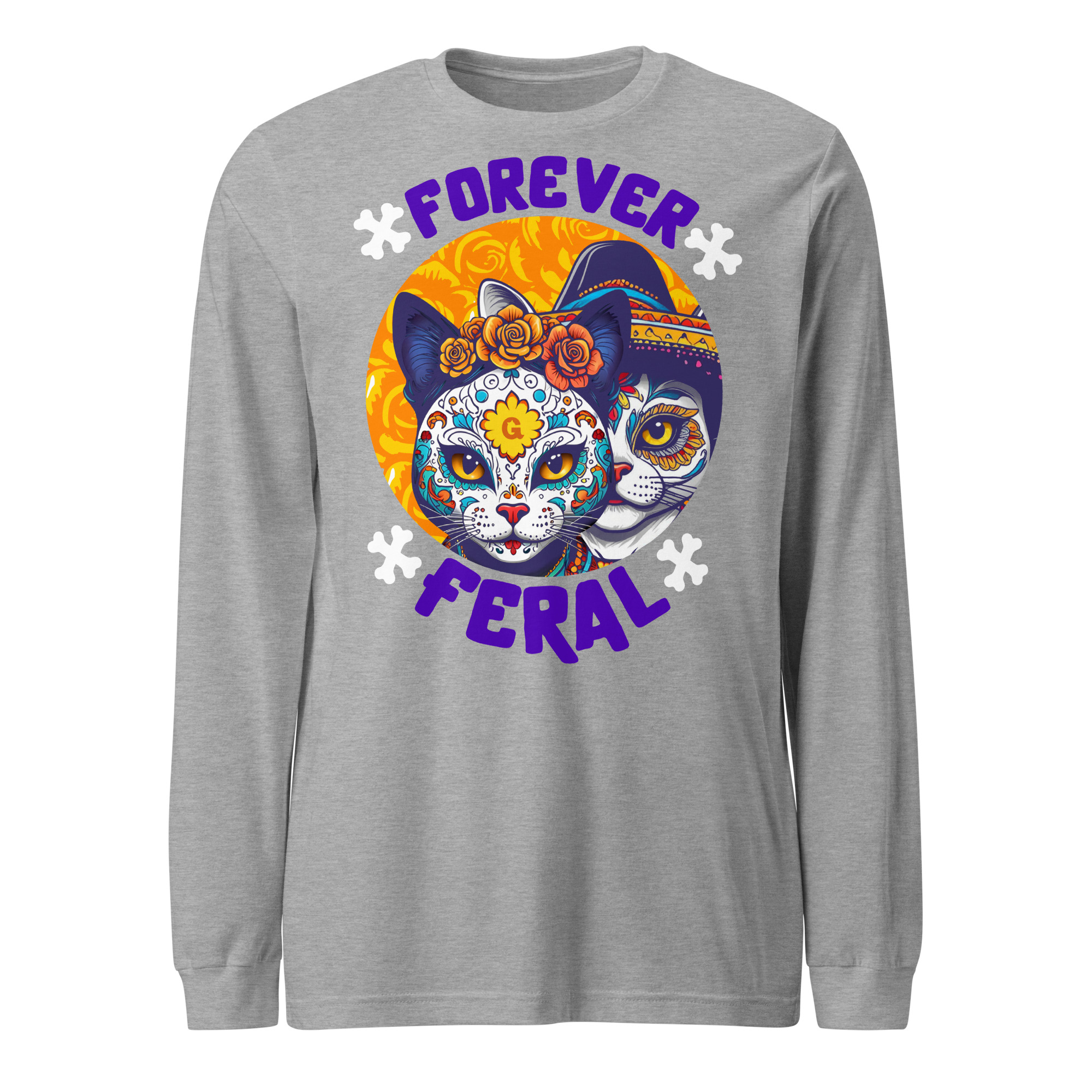 Forever Feral Cat Long Sleeve Tee – Día de los Muertos Shirt