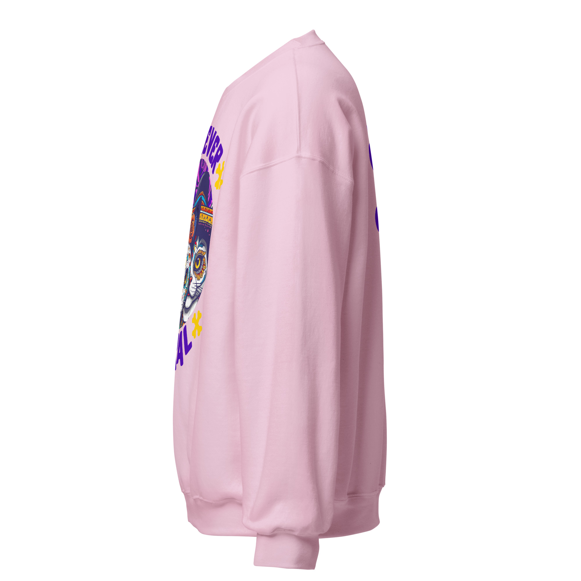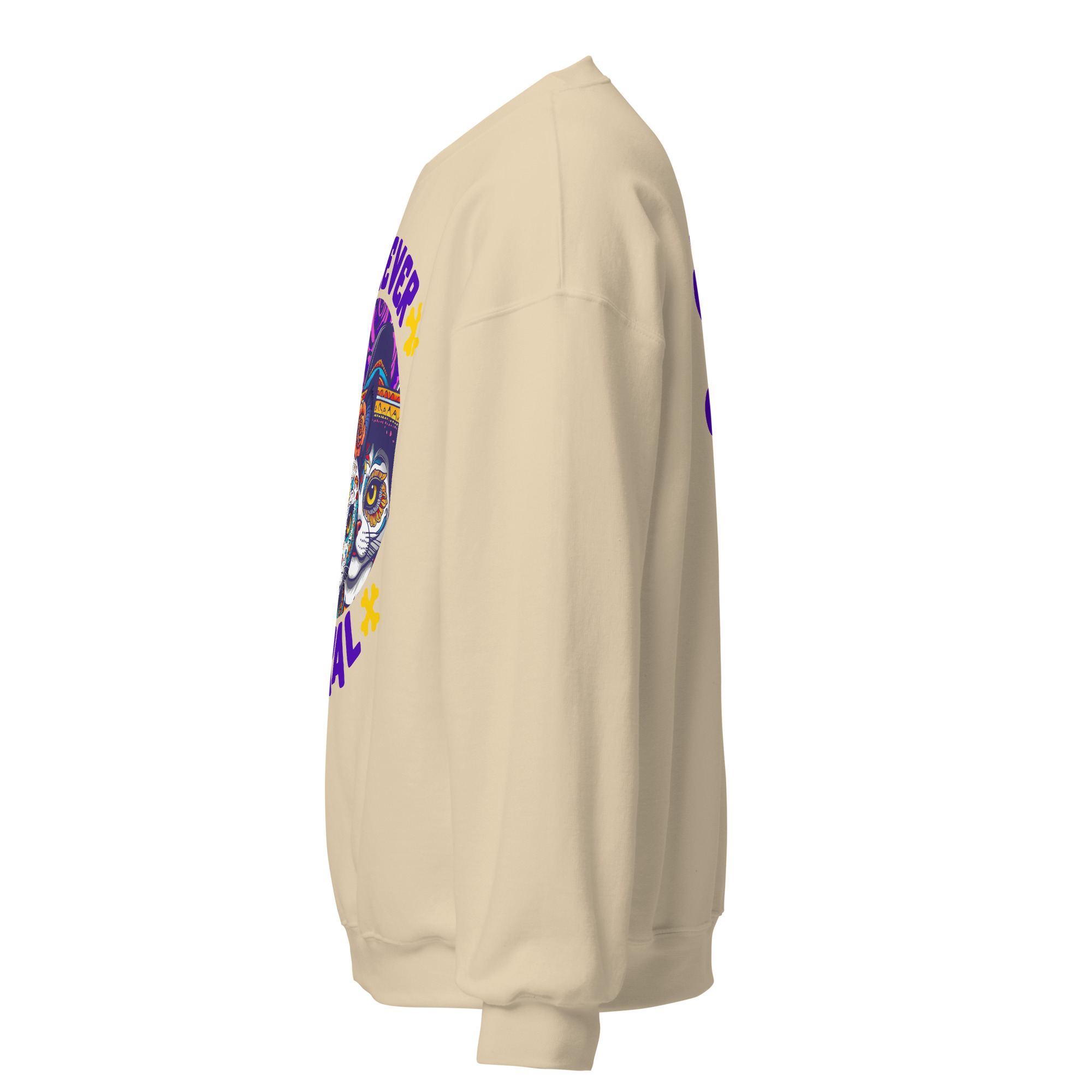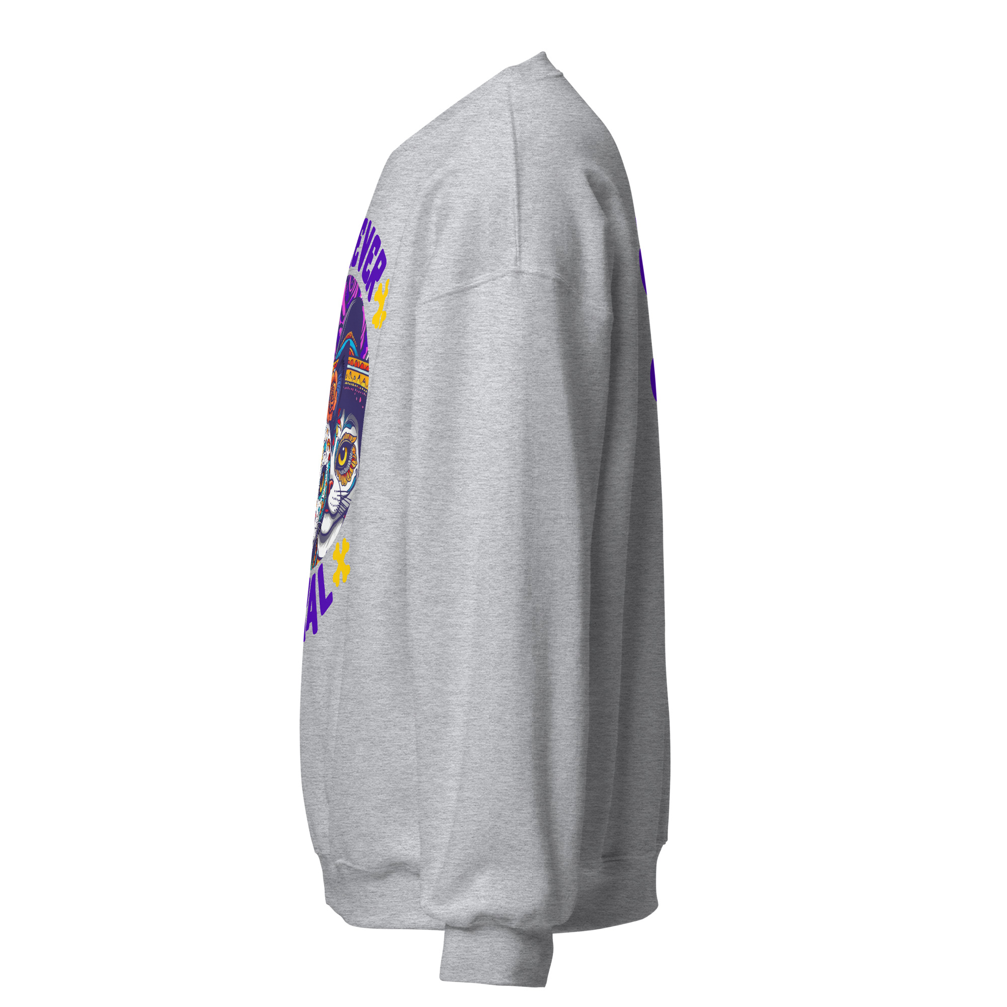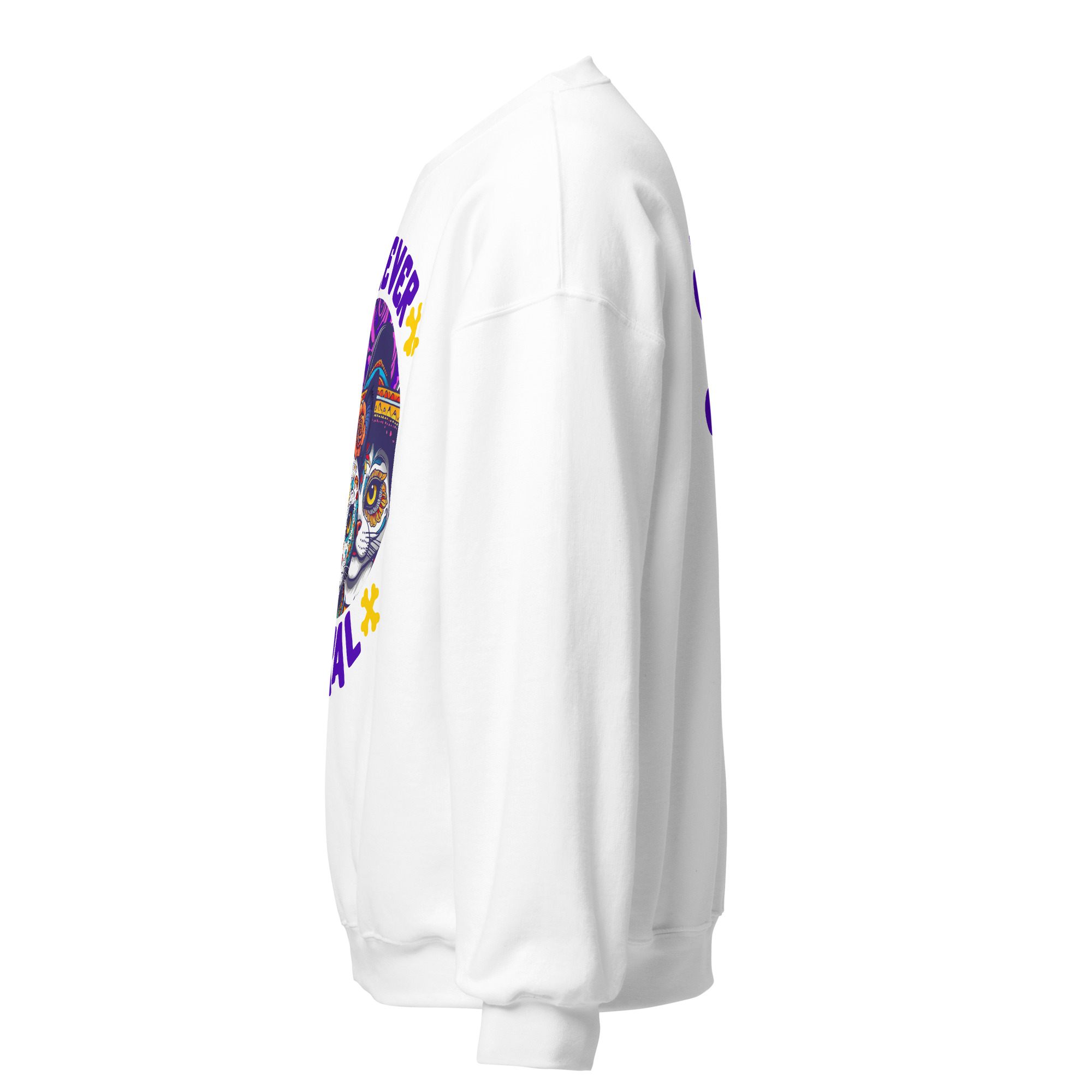 For the cat who answers to no one (and the human who loves them anyway), the Forever Feral Sweatshirt is your new uniform. The bold sugar‑skull cat graphic and tongue‑in‑cheek slogan make this crewneck equal parts statement piece and comfort zone.