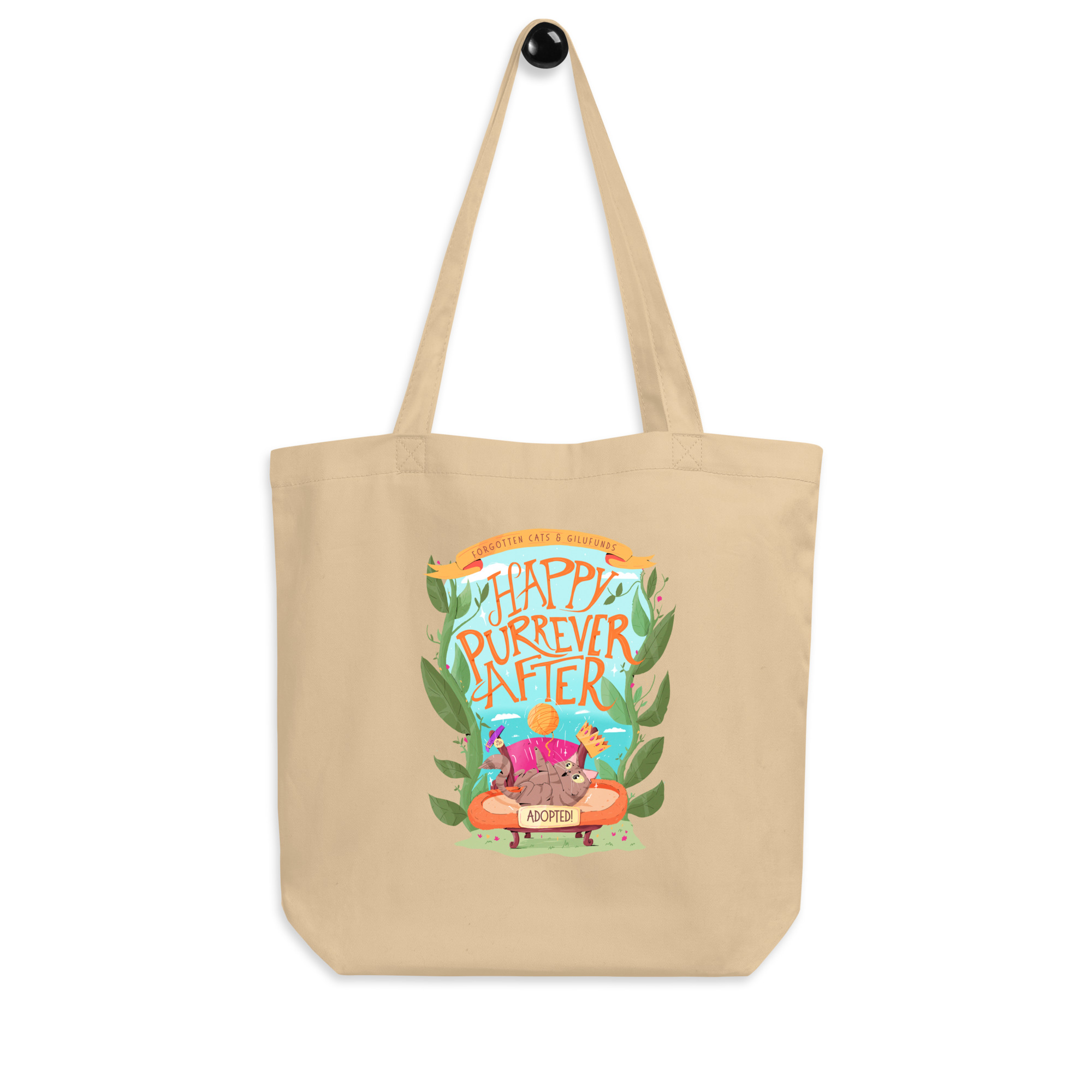 Carry rescue magic everywhere. This eco tote celebrates adopted cats—and 15% of every sale funds real rescue efforts through GiluFunds.