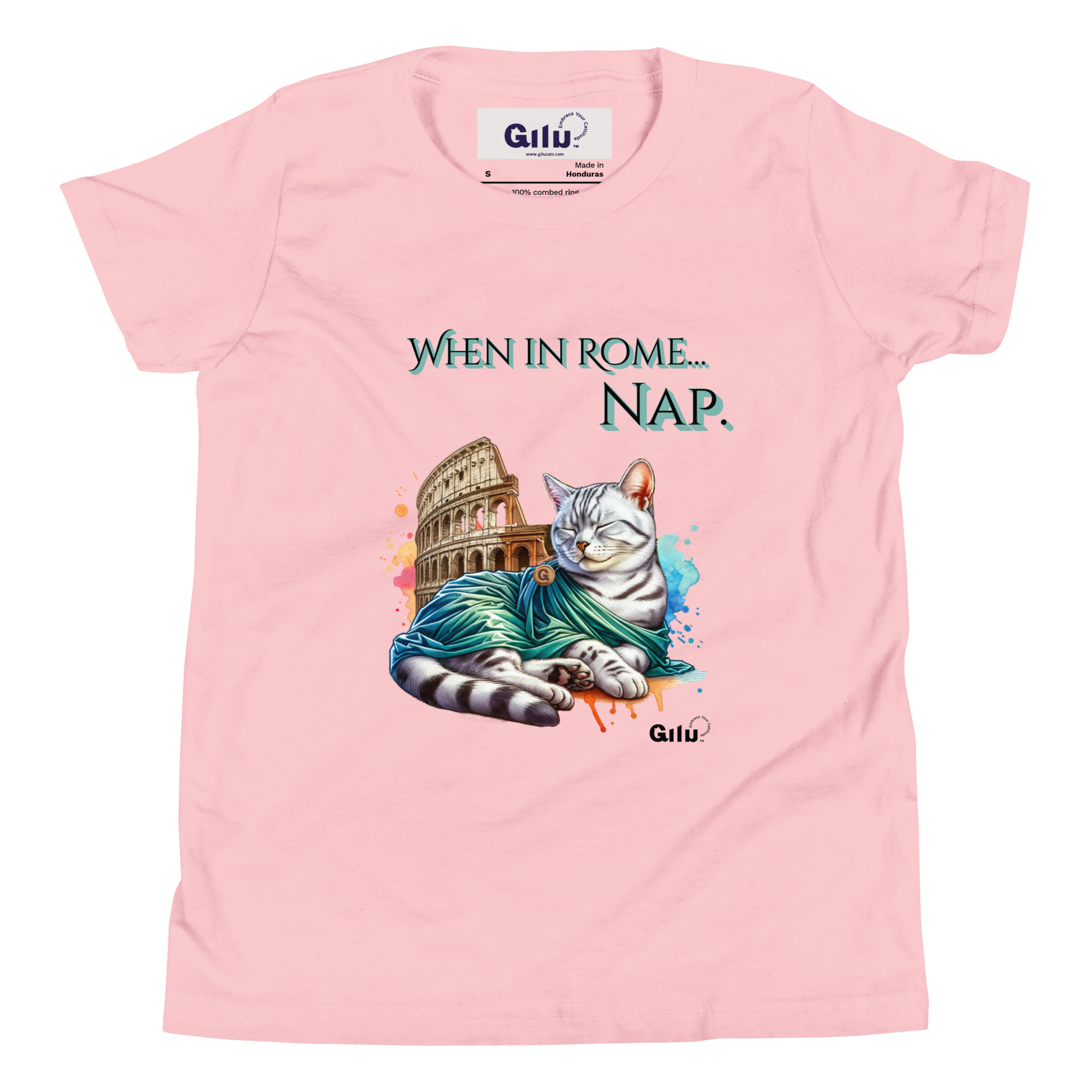 When in Rome… Nap – Funny Roman Cat Youth Tee
