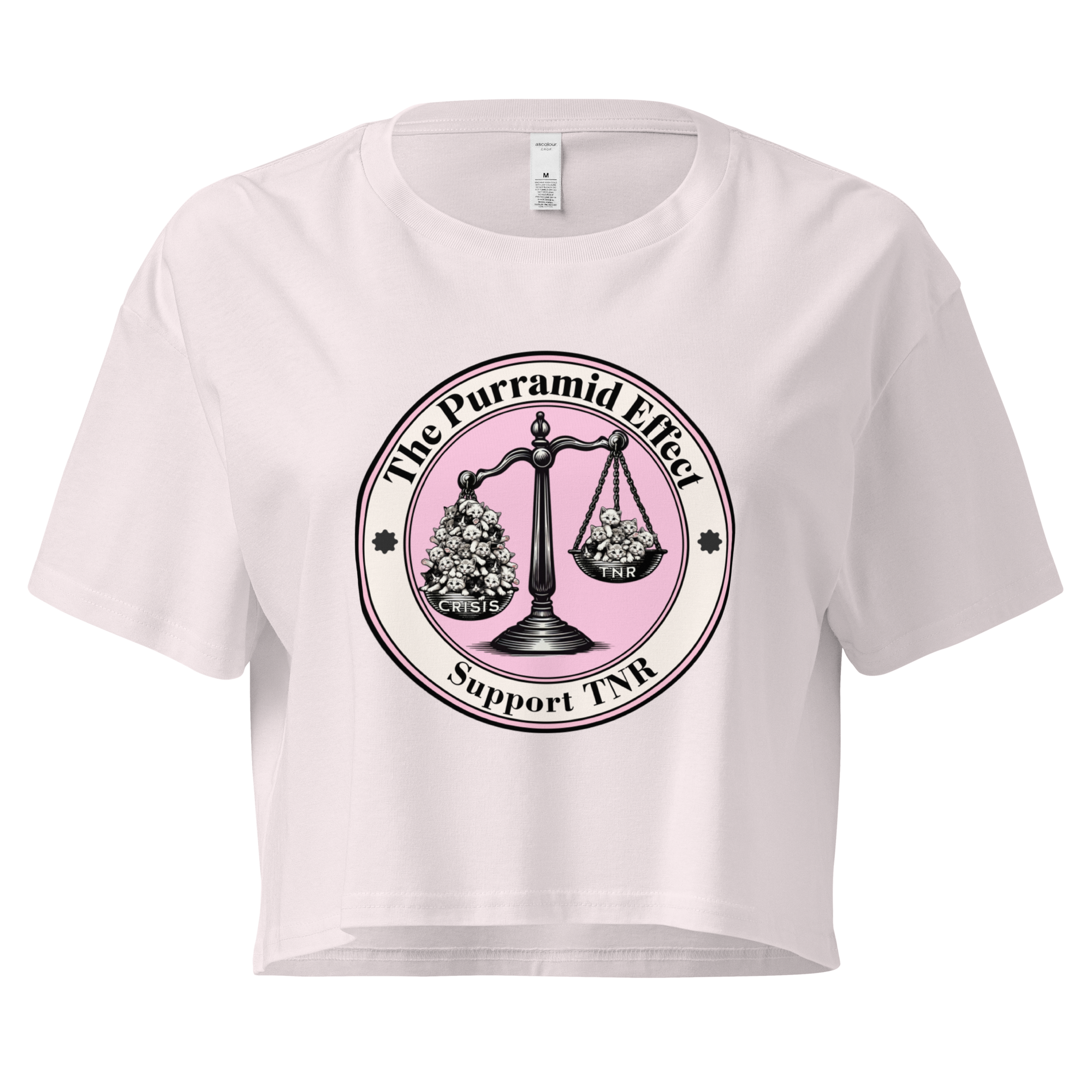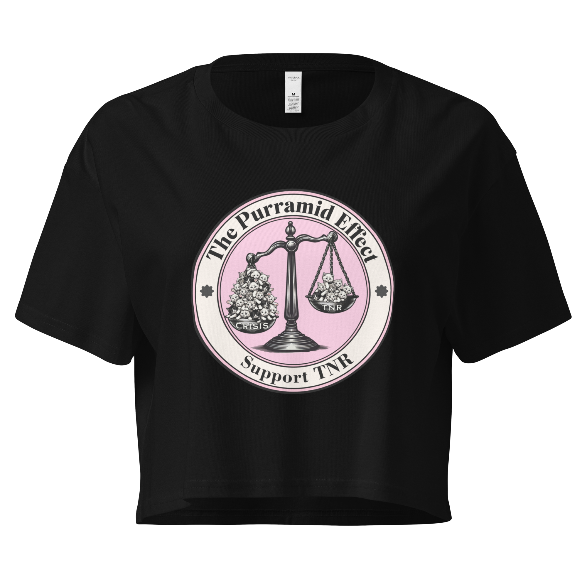 This women’s crop top features “The Purramid Effect” design—a cat-themed graphic that raises awareness for TNR (Trap-Neuter-Return). Flattering, comfy, and full of feline attitude, it’s the purr-fect crop for cat lovers with a cause.